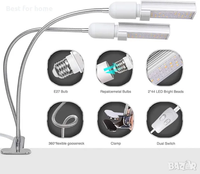 ✪[Продуктова надстройка и подмяна на крушка]: Модернизираната 45W лампа с двойна глава с висококачествени LED чипове за подобряване на светлинната ефективност и по-висок PAR/лумен изход. Сменяемата крушка е лесна за инсталиране и премахване, като се избягва повреда на лампата, поради която се губи цялата светлина. Предлага се за смяна на крушка за фасунги E26 E27.