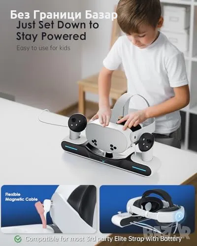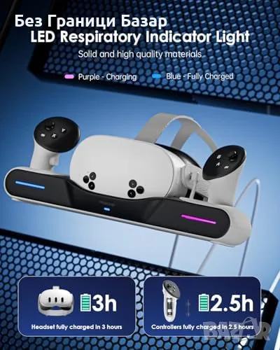 Магнитно зареждане – бързо зареждане на слушалките (≈3ч) и контролерите (≈2.5ч).