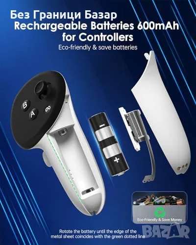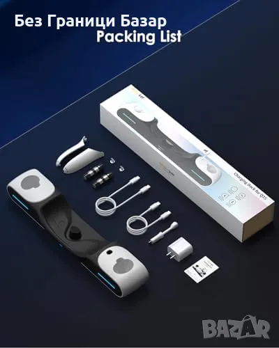 Комплектът включва – зарядна станция, батерии, USB-C кабели, адаптер 20W, капаци за контролери.