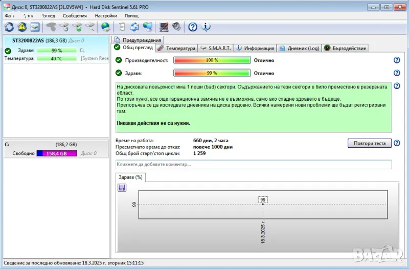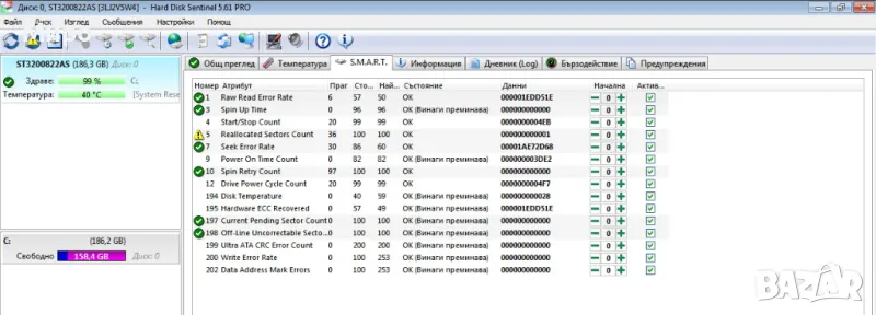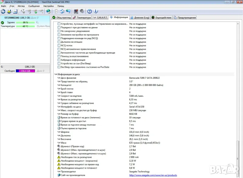 4. Твърд диск - 200 GB Seagate Barracuda (ST3200822AS), 7200, 8 Mb, SATA
