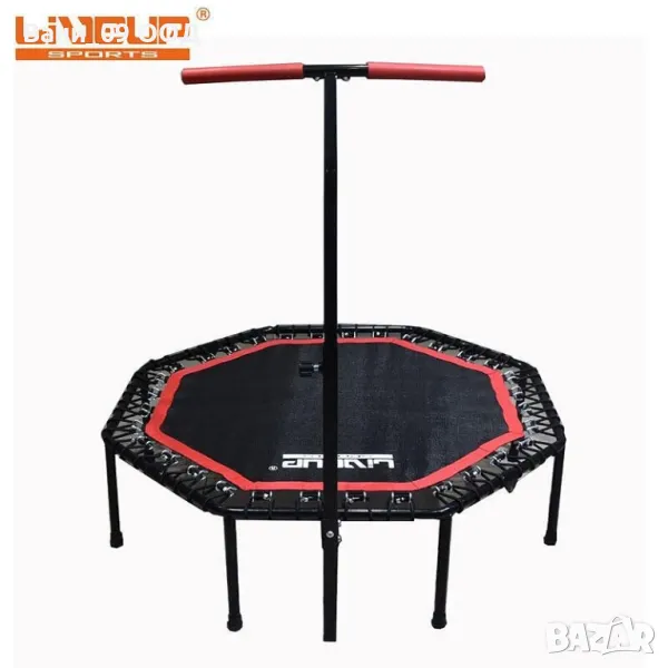 Фитнес батут за тренировки вкъщи, в стилната комбинация черно и червено.