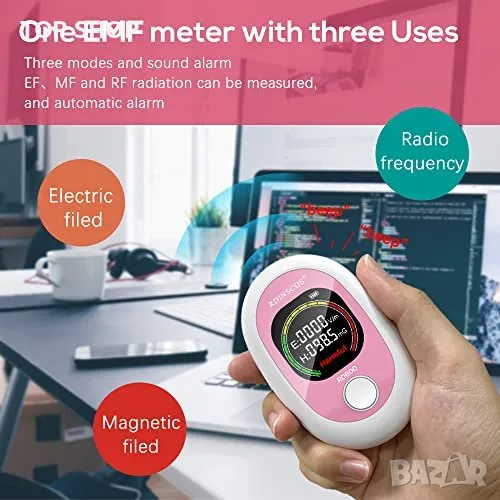 Автоматично предупреждава със звуков сигнал и аларма, ако стойностите на електромагнитното излъчване надвишават безопасните нива.