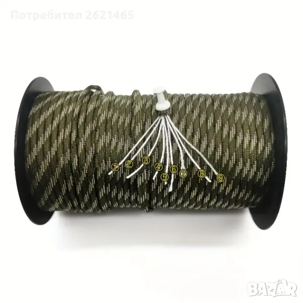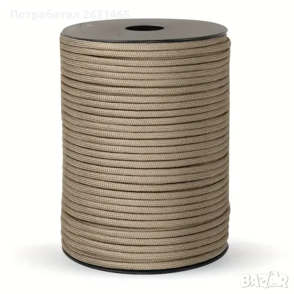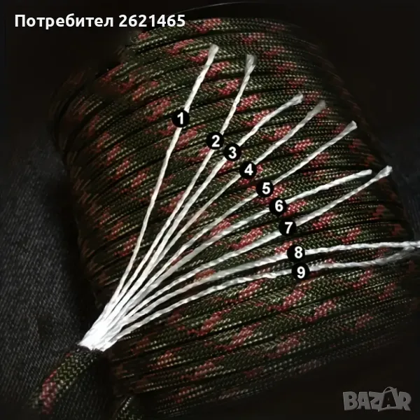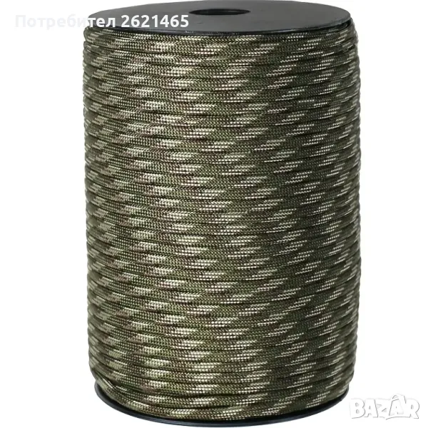 - Паракорд въже, изключително здраво, съставено от по-малки нишки, които имат висок праг на издръжливост на скъсване. Подходящо е за монтиране/връзване на