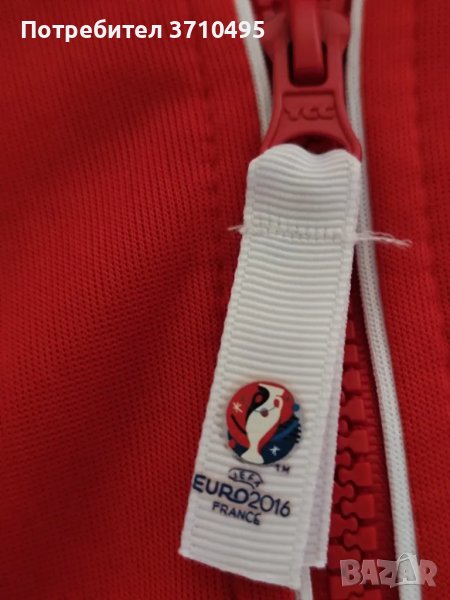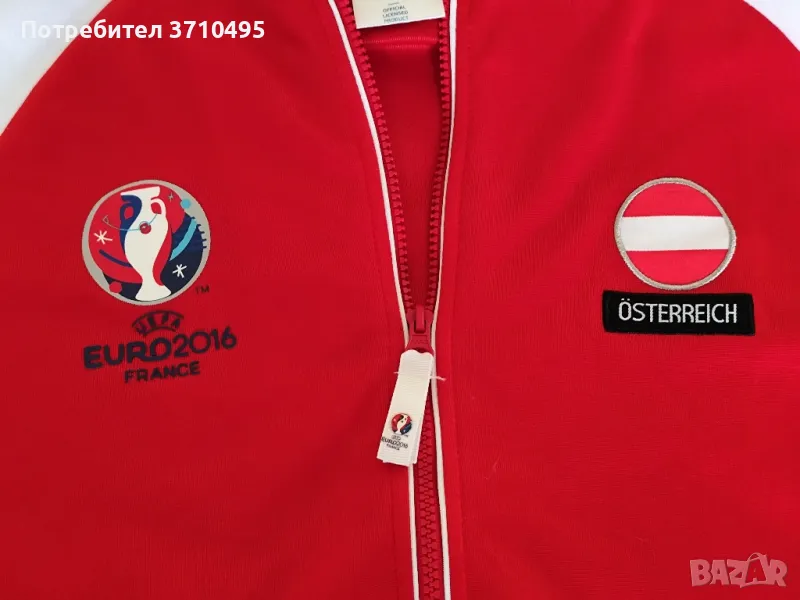 Горнището на Австрия е официален лицензиран продукт за ЕВРО 2016 Франция. Размерът му е L, произведено е в Камбоджа!Има два джоба с ципове, везани емблеми на Австрия и лого на ръкава UEFA EURO 2016 FRANCE