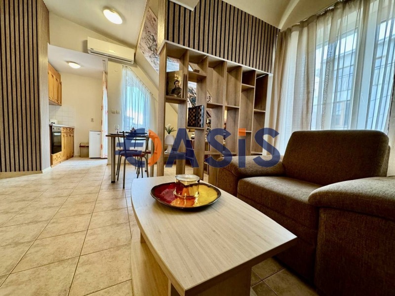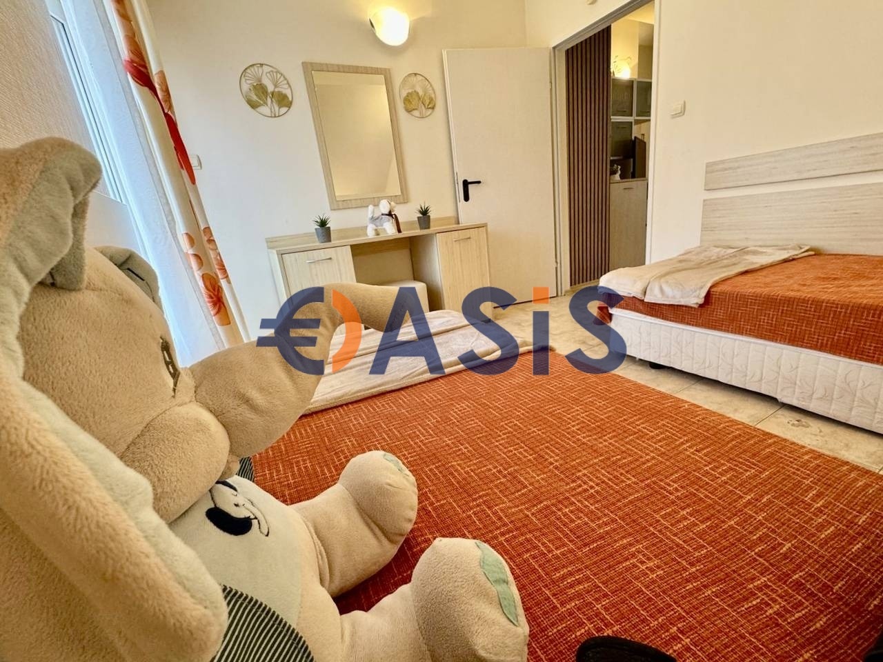 Продава се тристаен апартамент в уютния затворен комплекс Бел Еър, който се намира точно срещу хотел РИУ и има достъп до най-хубавия плаж в Свети Влас. Жилището се състои от входно антре, дневна с кухненска част и кът за отдих, две спални, санитарен възел и вътрешен двор. Банята е с душ кабина и всички необходими ВиК инсталации. Апартаментът се предлага за продажба с уреди и мебели. За гостите и собствениците има басейн, оборудвани зони за отдих и барбекю, добре поддържана зелена площ, детски кът и др. Има отделен паркинг за собствениците.