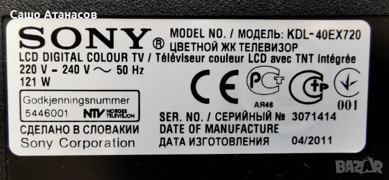 SONY KDL-40EX720 с счупена матрица ,1-883-924-12 ,1-883-753-32 ,EDL_4LV0.3 ,LTY400HF09 ,1-883-758-11