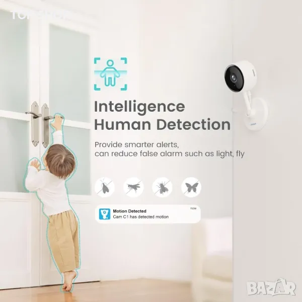 камера Litokam разполага с 2K HD резолюция и усъвършенствани оптични лещи за ясни, детайлни изображения, включващи 3X цифрово увеличение. Тя се отличава при условия на слаба светлина с 6 IR светодиода, предлагащи до 10 метра нощно виждане. Тази камера за домашна охрана поддържа откриване на движение и бебешки плач с известяване, докато Smart Siren може да издаде силен сигнал при засичане на нарушител. Тя също така предлага двупосочен звук за комуникация и е съвместима с Alexa и Google Assistant за гласово управление. Можете да съхранявате кадри на TF карта (не е включена) или в облака (14-дневен безплатен период) с криптиране за сигурност на данните. Поддръжката за много потребители и множеството опции за преглед я правят универсална за домашно наблюдение. Работи само на 2.4GHz WiFi!