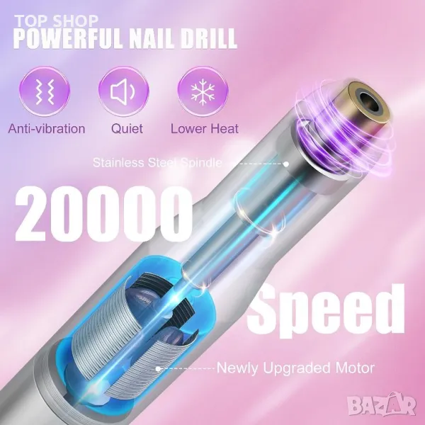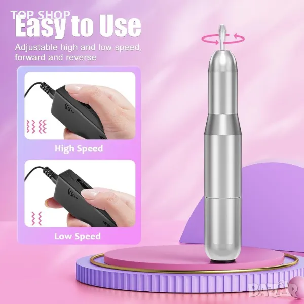 Тази пила за нокти е по-ефективна от традиционните пили за нокти, може да се използва за шлайфане, издълбаване, рязане, полиране и премахване на акрил, прах за потапяне, гел нокти. Осигурете ви безупречни нокти. Лесна за използване, регулируема и ефективна - Лесна за работа, тази електрическа пила с регулируем контрол на скоростта и посока на въртене F/R, подходяща за използване с дясна или лява ръка. Работи добре за начинаещи. Лесно премахване: