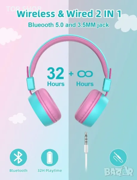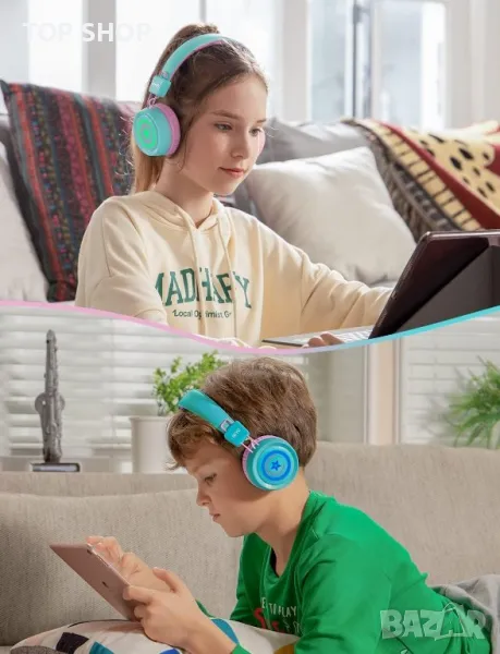 Bluetooth слушалките Riyo Kids разполагат с технология V5.0 за бързо и стабилно предаване на сигнал с обхват до 15 метра. Те предлагат впечатляващ живот на батерията до 32 часа с едно зареждане и могат да се използват в кабелен режим при ниска мощност. Тези слушалки осигуряват отлично качество на звука със стерео бас, което ги прави идеални за децата да се наслаждават на музика, филми, игри, онлайн чатове и др. Те идват с цветни LED светлини, които се променят с ритъма на музиката за допълнително забавление и имат удобни, шумоизолиращи подложки за уши, предназначени за деца. Освен това слушалките са сгъваеми и преносими за лесно използване или съхранение на открито.