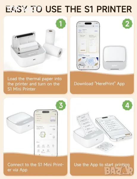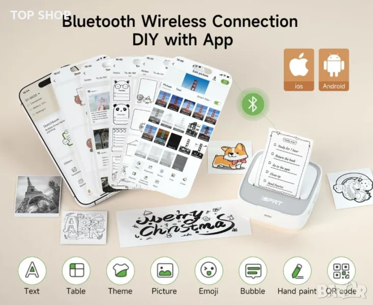 iDPRT Преносим термичен мини принтер за стикери, етикети, снимки, безмастилен