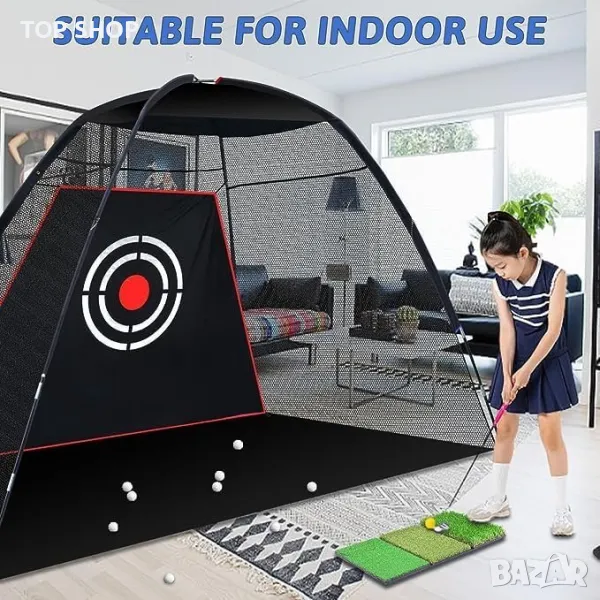Тази мрежа за голф е изработена от издръжлив найлонов материал, който е устойчив на износване и UV лъчи. Пръчките са здраво заварени и устойчиви на огъване. Сглобява се лесно за минути и може удобно да се разглобява и съхранява в включената чанта. Размерът на мрежата и височината на точката на удар отговарят на международните стандарти, осигурявайки удобно и приятно изживяване при игра на голф. Включеното ръководство предоставя ясни инструкции за бърз и лесен монтаж.