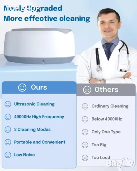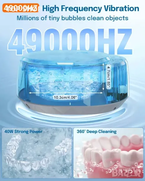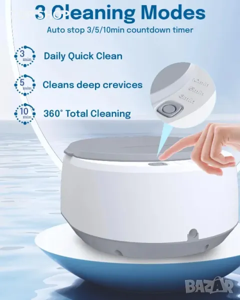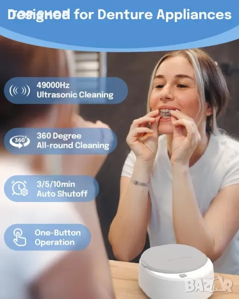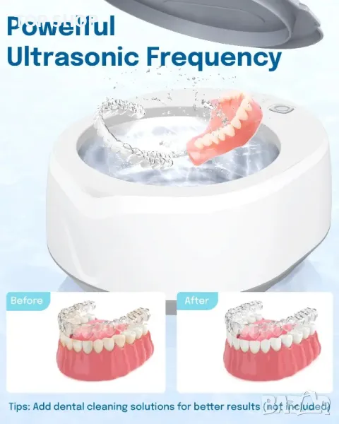 Ултразвуков уред за почистване на протези, фиксатор, бижута с 3 режима, 49kHz, 340 мл преносим