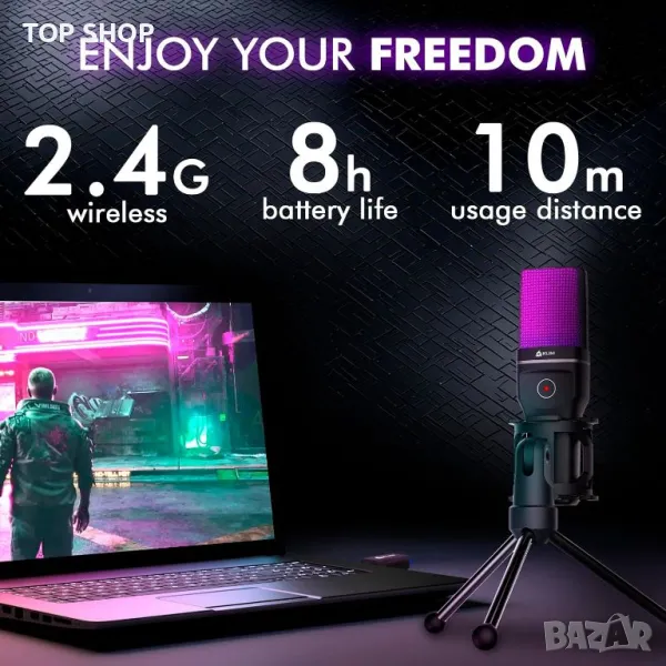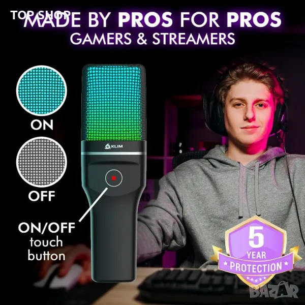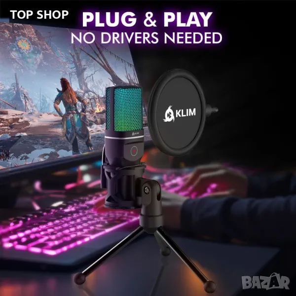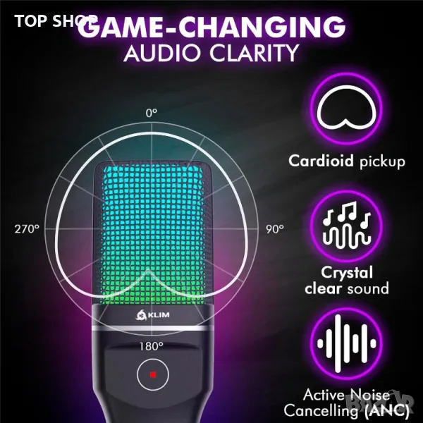 Насладете се на безпроблемна безжична игра с 2,4GHz технология, осигуряваща стабилна връзка до 10 метра и безпроблемна настройка. Микрофонът KLIM Muse, включващ висококачествена кондензаторна технология и активно шумопотискане, осигурява кристално чист звук, идеален за стрийминг и игри. Подобрете средата си за игри с динамично RGB осветление. Микрофонът предлага лесна работа с включване и пускане чрез USB донгъл, съвместим с компютри и игрови конзоли, без да изисква допълнителни драйвери.