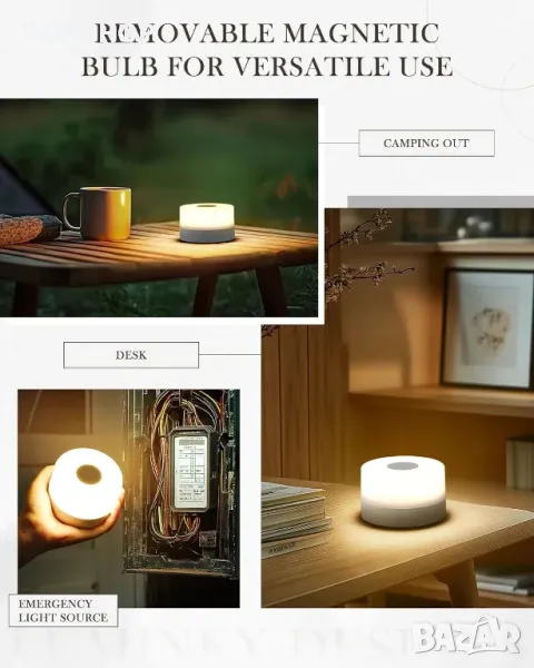 LuminexDesigns Акумулаторна безжична настолна лампа с подвижна преносима магнитна крушка, LED