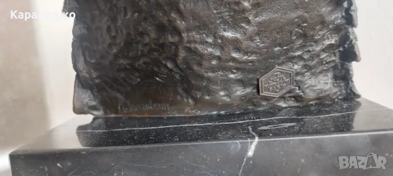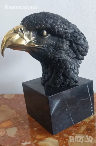 Насивна бронзова глава на орел-маркоровки-релефна изработка върху мрамор с размери 28/22см.