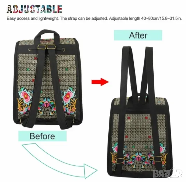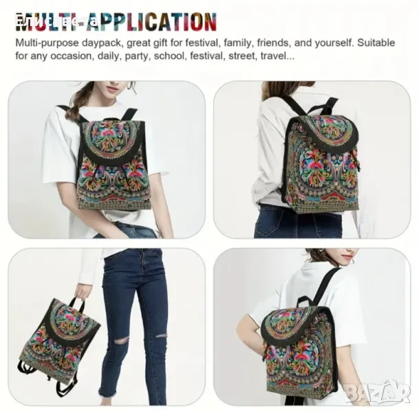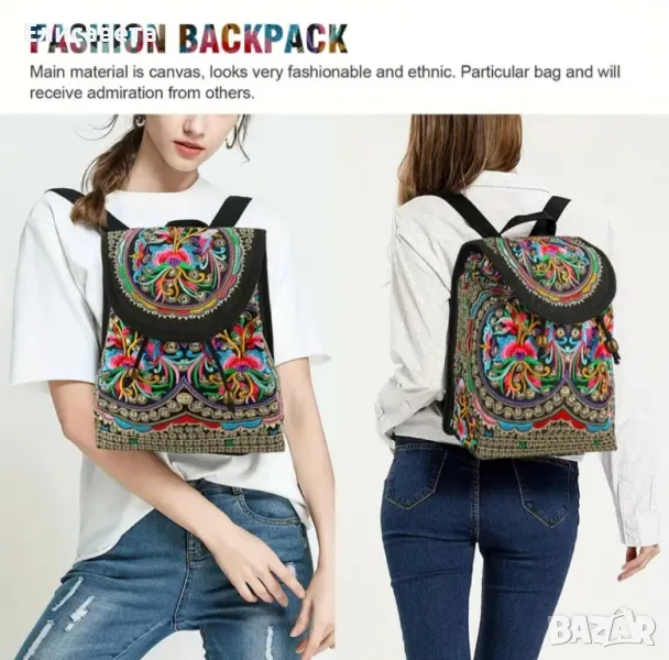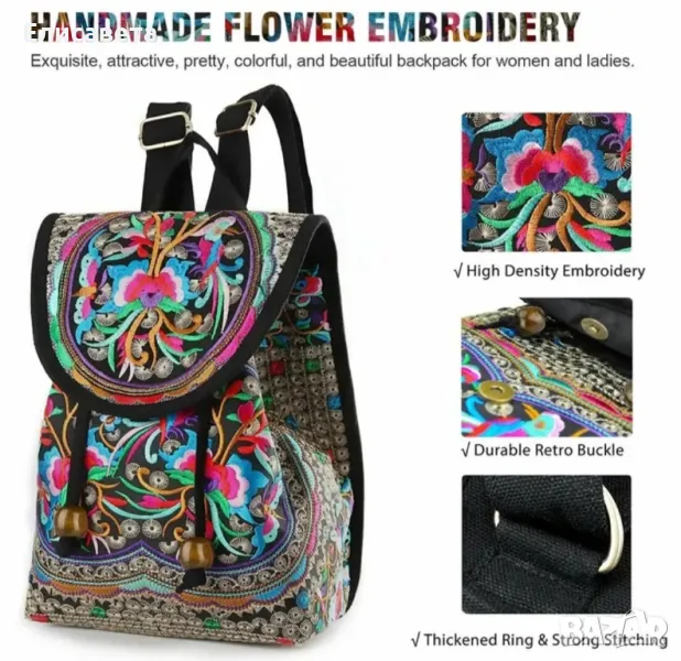 Дамска модерна раница с цветна бродерия