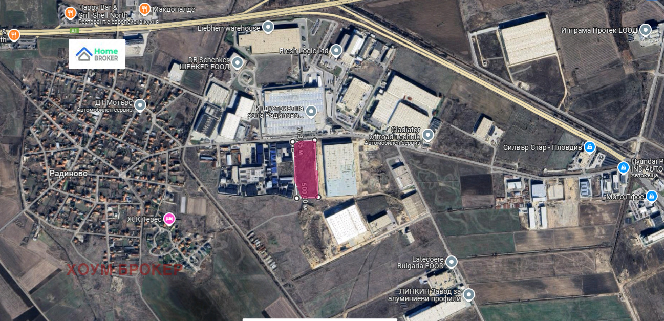 Представяме на вашето внимание терен с площ от 30000 кв.м., който се състои от два поземлени имота. Възможно застрояване на терена с плътност до 70%. Терена се намира в 'Индустриална зона Марица' - Радиново., намираща се непосредствено до автомагистрала Тракия , международен път Е80 и на 6 км. от град Пловдив.