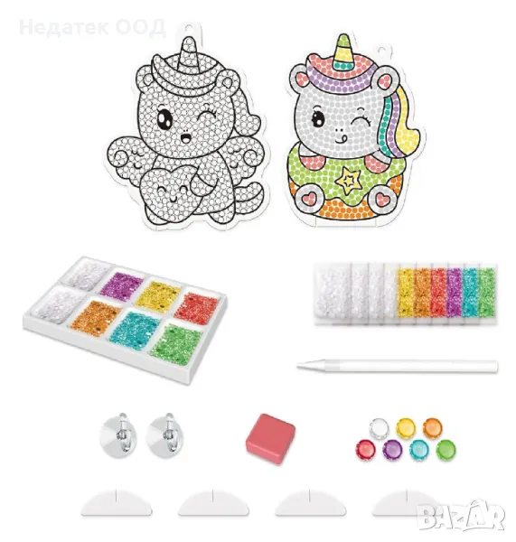 Комплект висящи декоративни конструкции с цветни перли и кристали. Поставете цветните перли и кристали с помощта на стилуса, за да създадете уникални висящи аксесоари за вашата чанта или портмоне.
