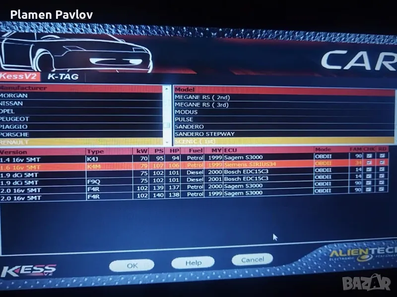 2. Ремап през OBD чрез Kess-двигатели K4J(1,4 16V),K4M(1,6 16V), F4P(1,8 16V), F4R (2,0 16V), D4F, К7М, К7J