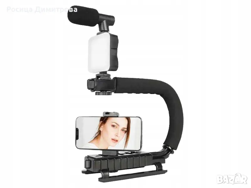 Универсалната стойка позволява монтаж както на смартфони, така и на цифрови фотоапарати или видеокамери.