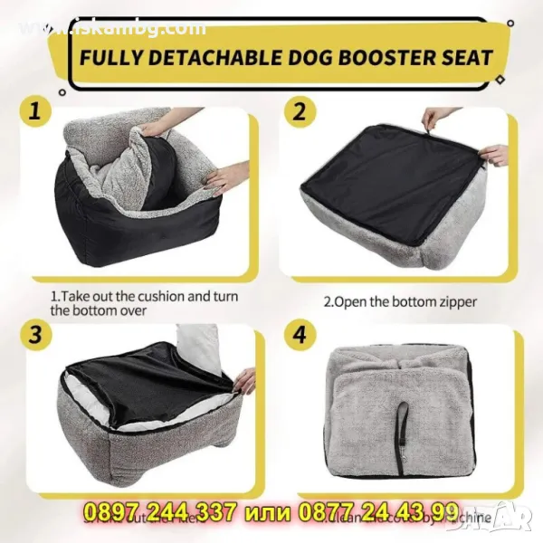 Благодарение на плътно подплатените бордове с дебелина 18 см, домашният любимец ще се чувства стабилно и сигурно по време на пътуване. Подвижната възглавница, изработена от водо- и замърсяване-отблъскващ материал, улеснява почистването и осигурява дълготрайна употреба. Надеждните ремъци за закрепване фиксират стабилно столчето в автомобила, а вградената каишка допълнително предпазва домашния любимец, осигурявайки му безопасно и комфортно пътуване.