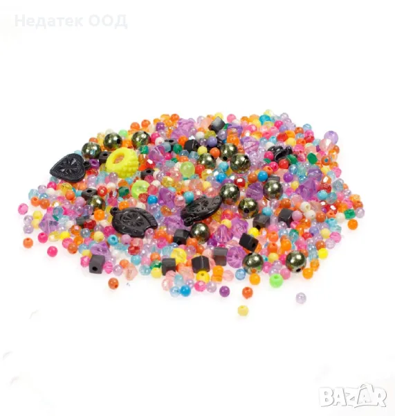 Направете свое колие и гривна с цветни, сребърни, златни мъниста и цветни звезди и сърца. Опаковката съдържа и цветни шнурове за изграждане. Съдържа приблизително 90 g 6 mm мъниста в различни цветове и висулки, 12 висулки със звезди и сърца, 1,9 m восъчен шнур и 2,7 m еластичен шнур. Направете бижута по ваш дизайн!