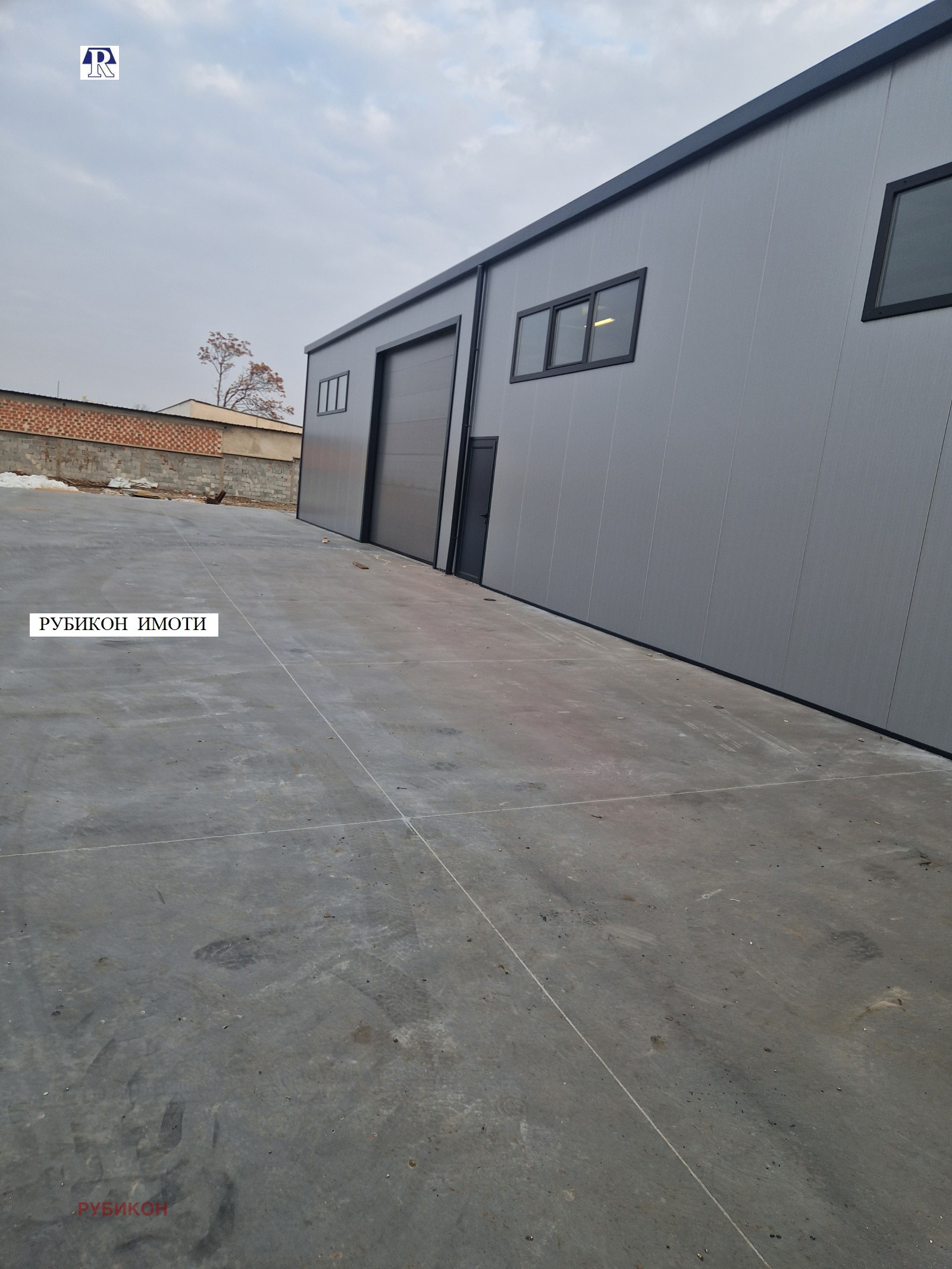 Excellent location and communications in close proximity to main roads! New production and warehouse hall, with metal structure and thermopanel walls. Meets all European requirements: under polished concrete, automated doors, natural lighting and fluorescent lighting, fire safety systems: fire extinguishing and notification, sanitary facilities, height 4. 50m. at the lowest point. Yard - 1300sq.m. Other options: TIR access, parking spaces for customers and staff. Bathroom and toilet. Rubicon company has over 500 offers for renting warehouses and industrial premises with different areas and locations in Plovdiv and Plovdiv region! Address of Rubicon's office in Plovdiv: 47 'Iztochen' Blvd., 2nd floor, office 7