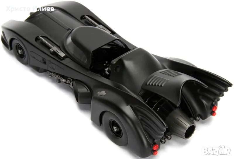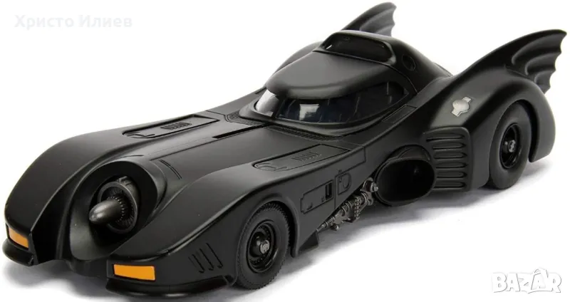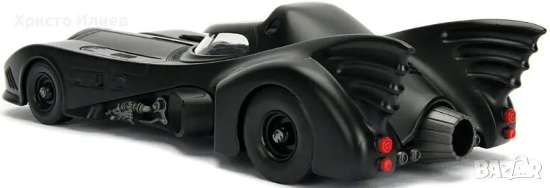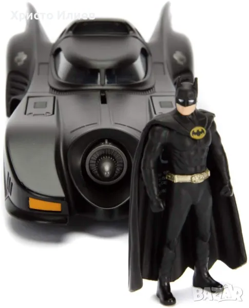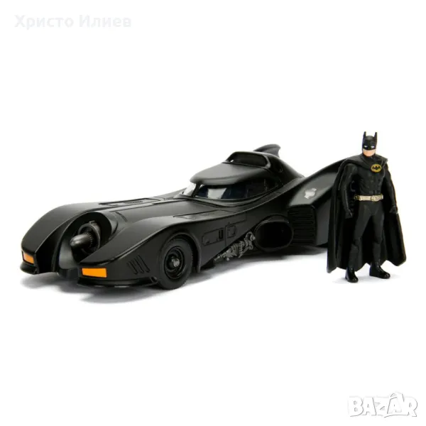 Ако сте почитатели на героите от DC Comics, то тогава ще харесате тази страхотна фигура от компанията Jada Toys. Тук имаме емблематичния личен автомобил на смелия защитник на Готъм Сити – Батмобилът. Неговият дизайн е вдъхновен от класическия, едноименен филм на Тим Бъртън, който излиза през 1989 г. Стандартните екстри на превозното средство включват лазерно оръдие, тежкобронирано шаси, високооборотен двигател и още много други.