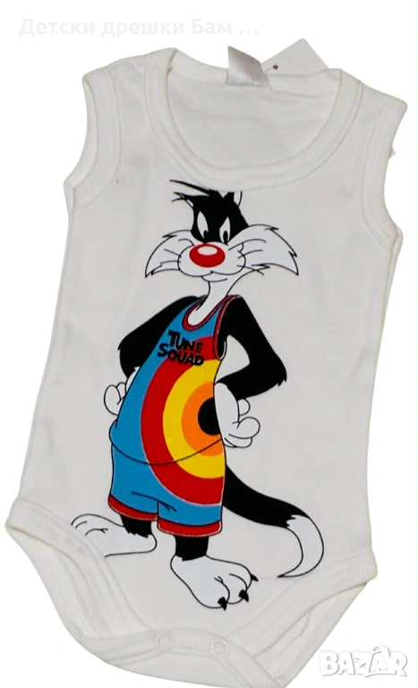 Лятно боди тип потник с щампа на Силвестър, култовата котка от любимите анимации.