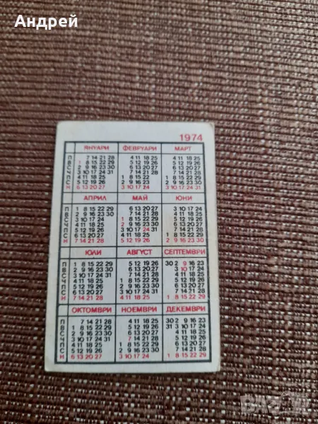 Календарче ДСК Отдих и Туризъм София 1974 → Обява 49556041