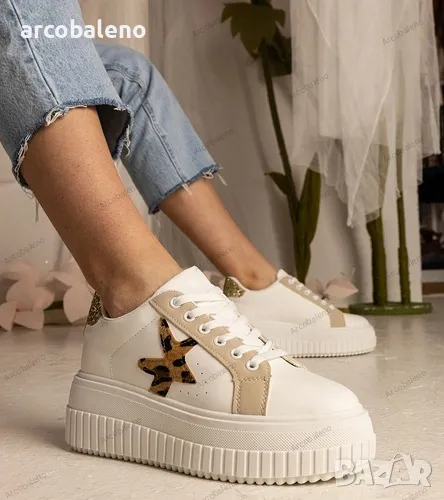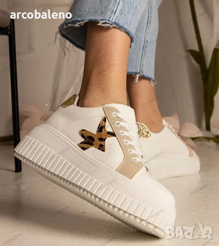 Не пропускайте възможността да обогатите гардероба си с тези необикновени бели и бежови кецове, украсени с блясък и звезда. Изберете маратонки Taleda и се чувствайте уникални, където и да отидете. Поръчайте днес и се насладете на модния външен вид и комфорта, които предлагат тези стилни обувки.