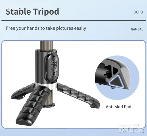Селфи стик със стабилизатор Gimbal, въртене на 360°, Статив с безжично дистанционно управление и запълваща светлина, Анти-шейк и стабилно снимане, Интелигентно проследяване на лица, Автоматичен баланс за смарт телефони