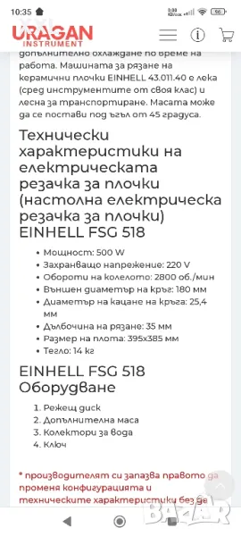 einhell-FSG 518 500 w за водно рязане на теракот и фаянс всичко по машината е изправно изпробвана е в реална обстановка и работи както трябва, наклон на плота тава за пълнене с вода за водно охлаждане предпазител и ограничител машината е в много добро техническо и визуално състояние лично предаване или Еконт-50 евро . за въпроси и коментари 0877003238