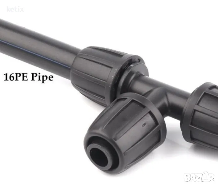 Може да се използва за свързване на многосезонни капкови маркучи, LDPE тръби PN4 и PN6 с външен диаметър 16.