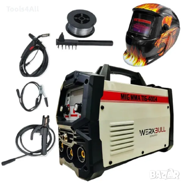 🔹 Мултифункционалност – телоподаващ и електрожен в един уред + необходими аксесоари + соларна маска