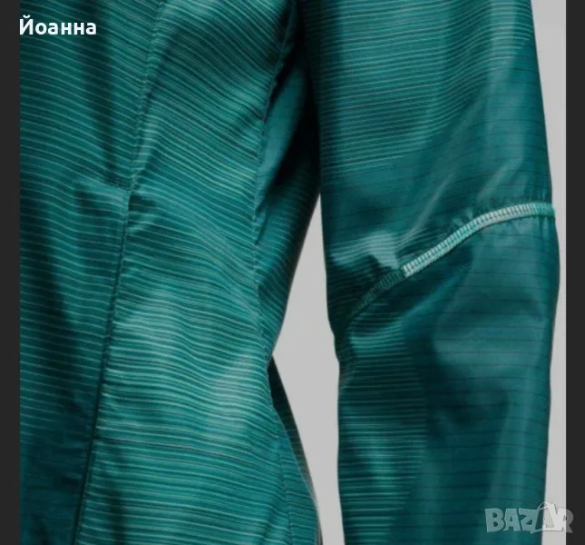Подходяжа за бягане, планинско изкачване, туризъм. Водонепромокаема. Ветероустойчива. <100гр. Дишаща система на гърба. Еластична качулка.