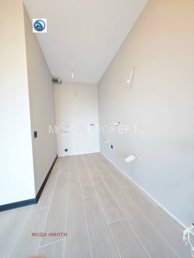 Апартаментът се продава без мебели, но вече е поръчана нова бяла гланцова кухня от MDF с уреди на стойност 4 000 евро (заплаща се допълнително).