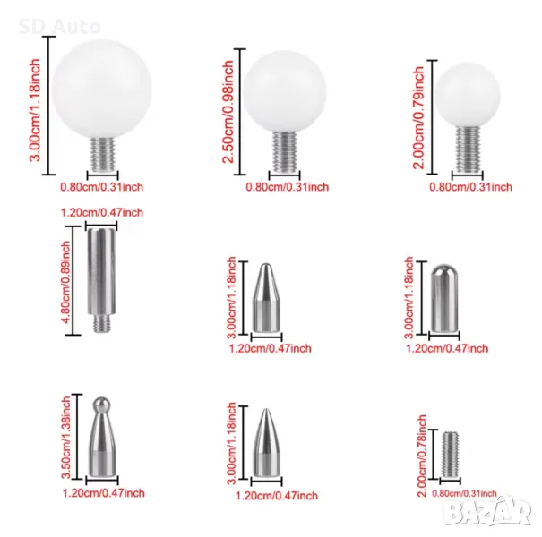 ***PDR Адаптери и Накрайници за Лост 8 мм/ резба - 12 части