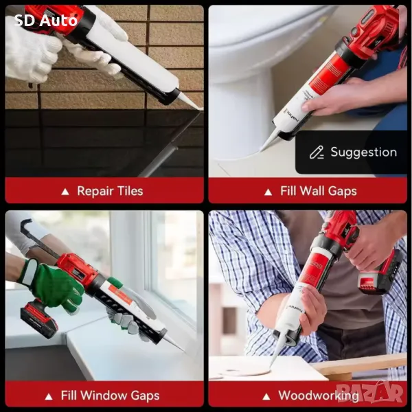 Автоматично освобождаване: Когато пуснете спусъка, завъртането на превключвателя автоматично ще отскочи, за да предотврати изплъзването на излишното лепило. Технологията за освобождаване спестява повече време и усилия. Този пистолет за уплътняване е подходящ за всички стандартни пълнители от 300 милилитра.