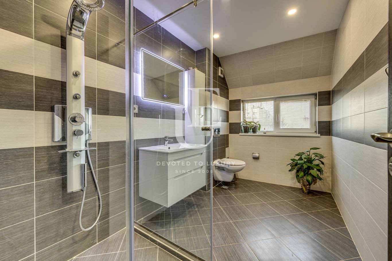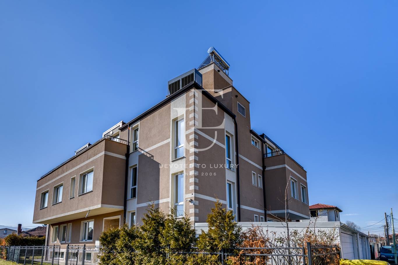 Сградата е напълно, много добре завършена. Има асансьор, свързващ всички етажи. Отоплението е на електричество и висок клас термопомпа вода-въздух. Акт 16 от 2017 година.