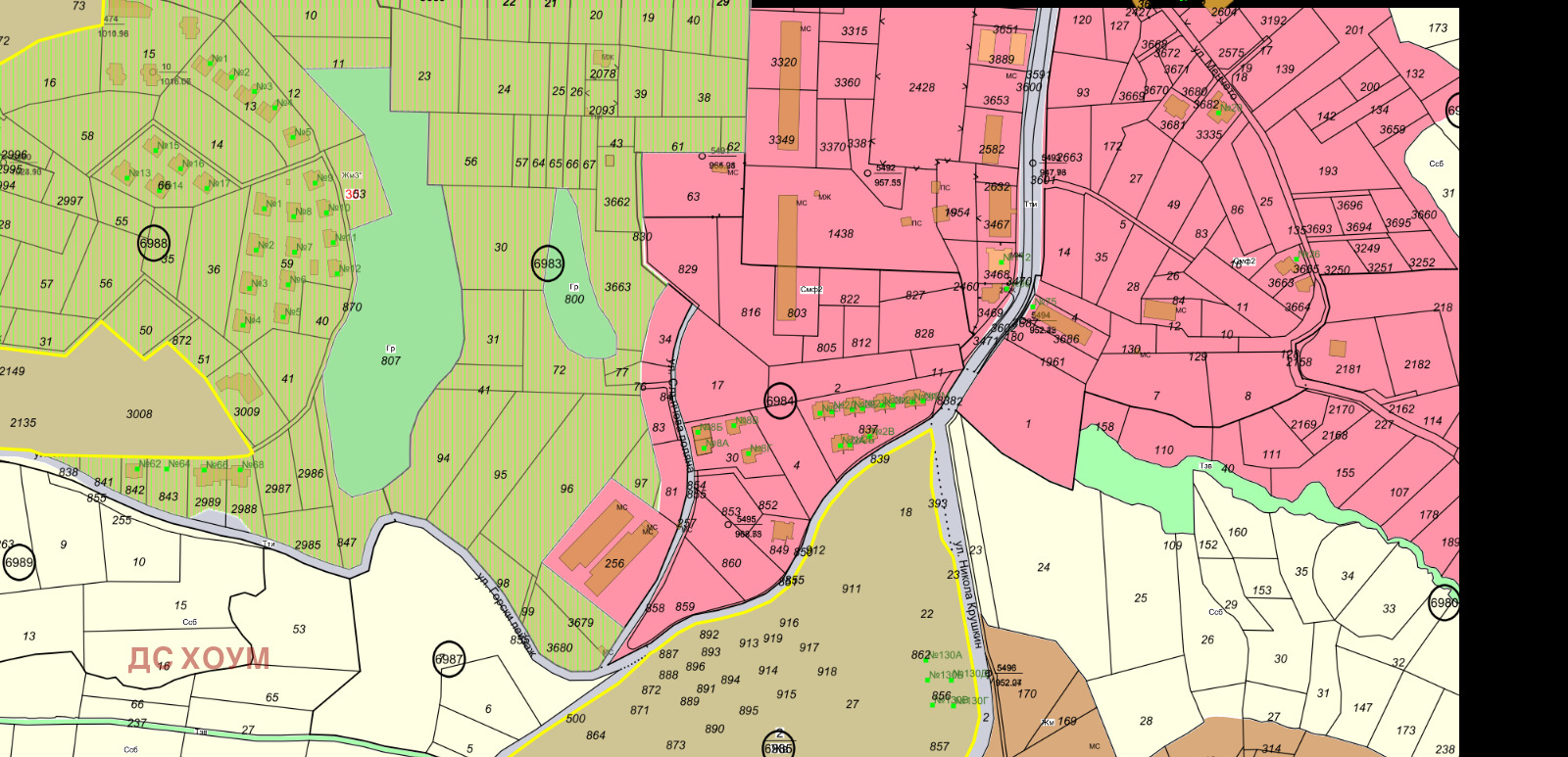 До нови къщи!С параметри на застрояване Жм3*,пл.15%,Кинт 0.3/0.5,К.К-7м.