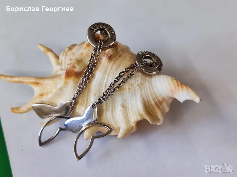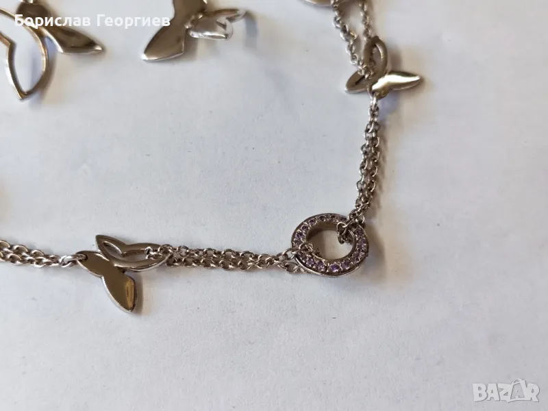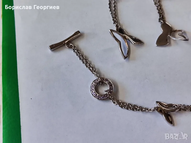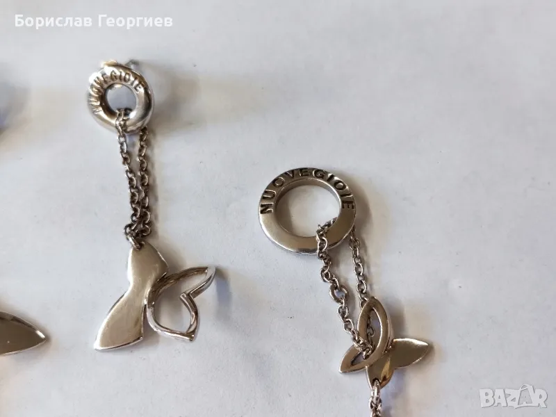 Сребърен комплект гривна с обеци с пеперуди на Nuove Gioie с проба 925 в добро състояние.Дължина на обеците 6 см и дължина на гривната без закопчалките 17,5 см.