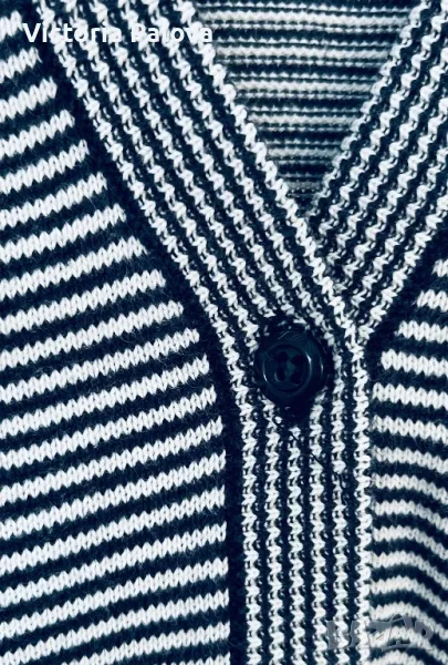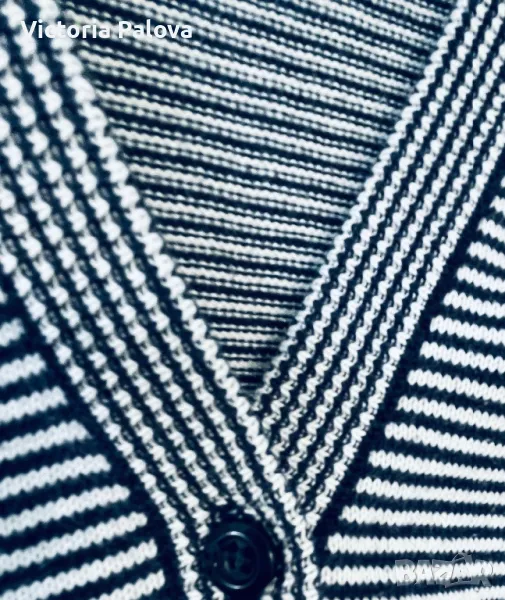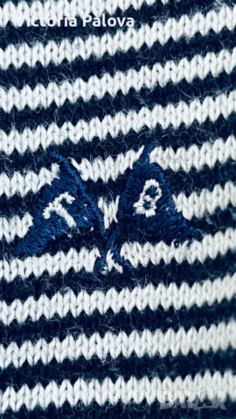 Жилетката е без никакви забележки или следи от ползване, 100% плътен гладък памук, избродирано лого, прекрасен принт - ненатрапчиво ситно райе. Рамо - 42см, ГО - 45см, дължина - 66см, ръкав - 41см ( 3/4).