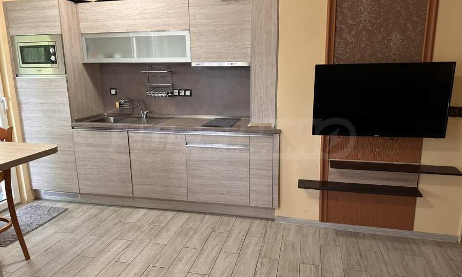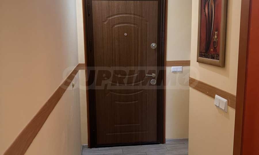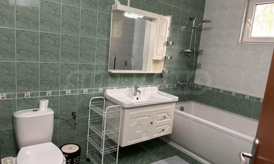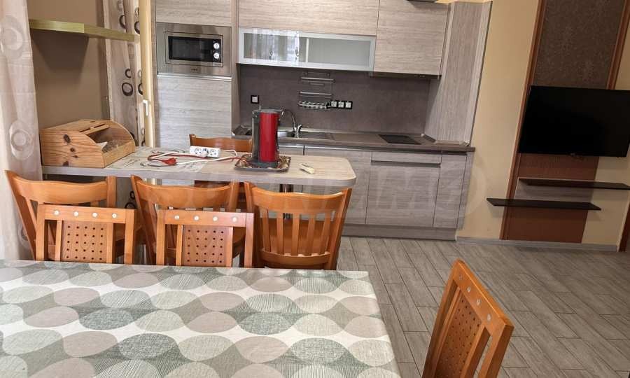 тераса.Апартаментът е напълно обзаведен и оборудван, с всичко необходимо за едно домакинство, готов за нанасяне. Отоплението е на ток, посредством климатици.