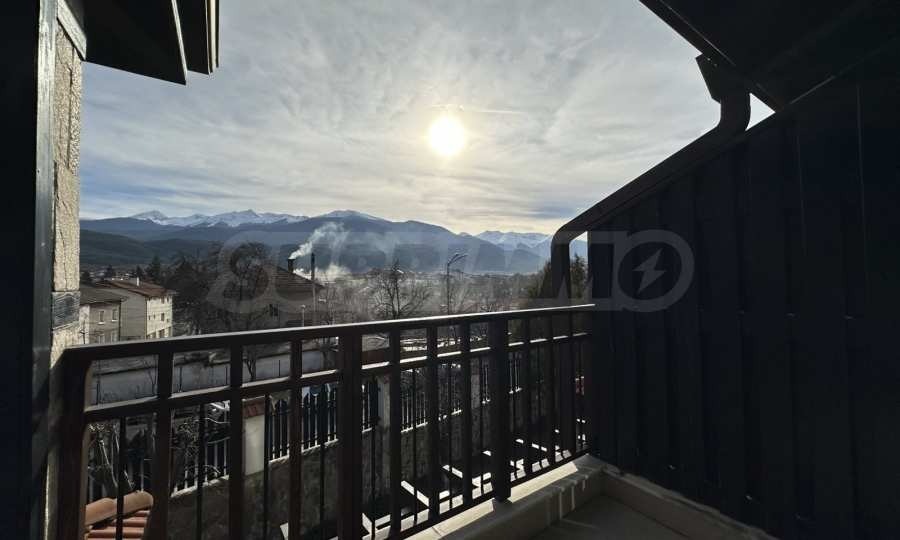Покрита тераса с южно изложение към една от спалните, с изглед към планината.