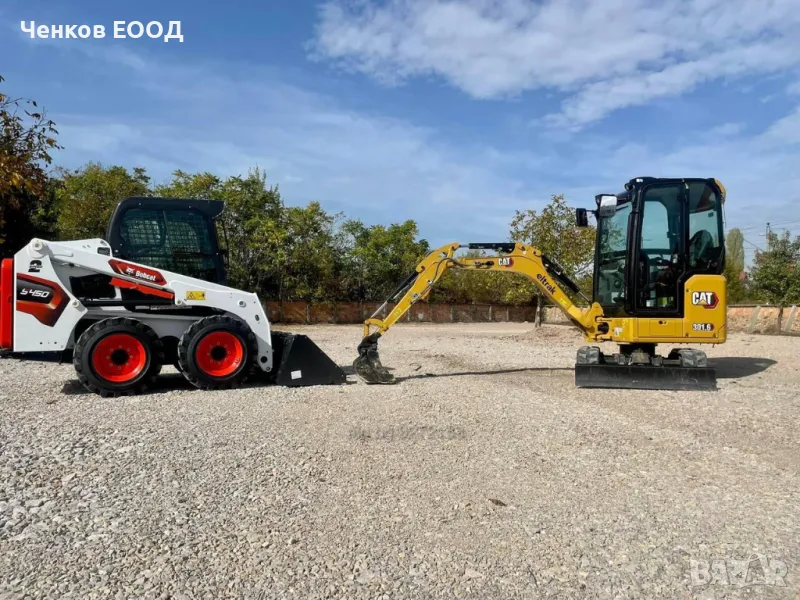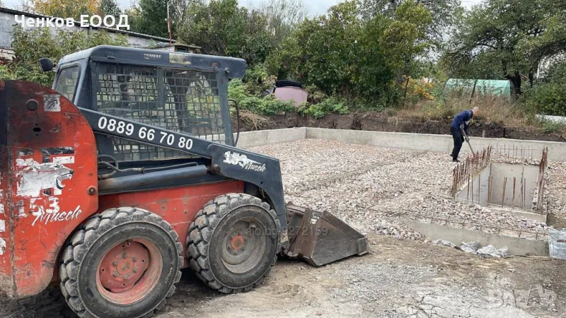 Мини челен товарач: 2.6 тона, работа с палетни вилици, подравняване, зариване, товарене, котиране, разхвърляне на бетон, скални маси и земни маси, хумус и други, снегопочистване(минимално 10см), полагане на асвалт и други.
