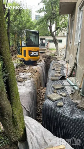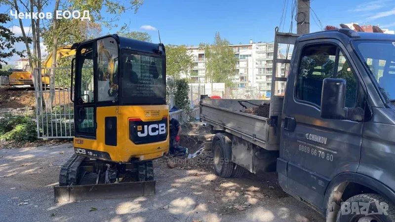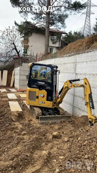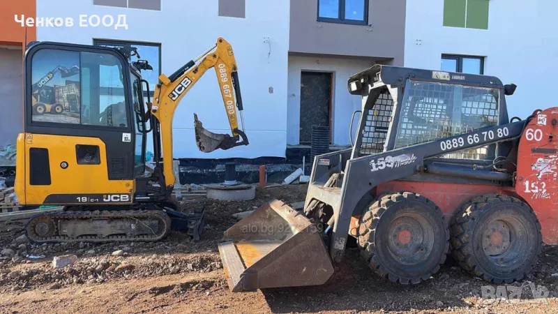 Мини багер: 1.9 тона, всякакъв вид изкопи, до 2 576 мм, основи, канали, дренажи, огради, изкопи, подравняване, работа на малки или трудно достъпни места, ВиК канализация, Ел. тръбни мрежи, шахти, водопровод, товарене на земна маси, разхвърляне на бетон и други.