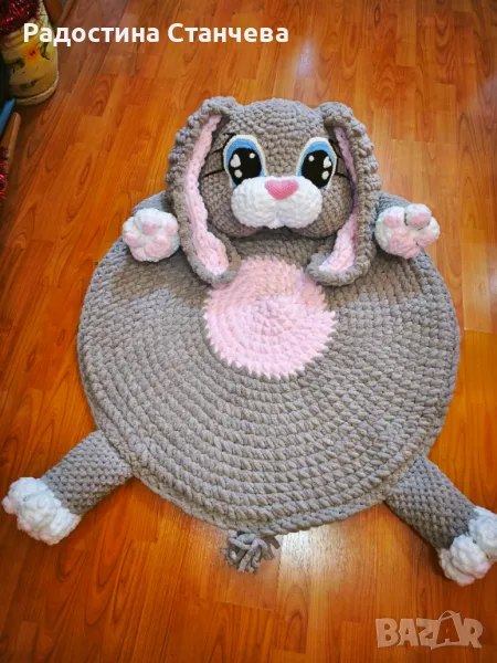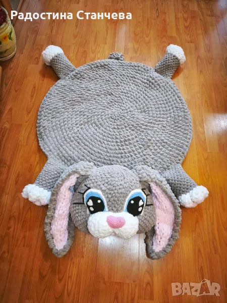 Създайте приказен свят у дома с това уникално ръчно плетено килимче във формата на зайче!