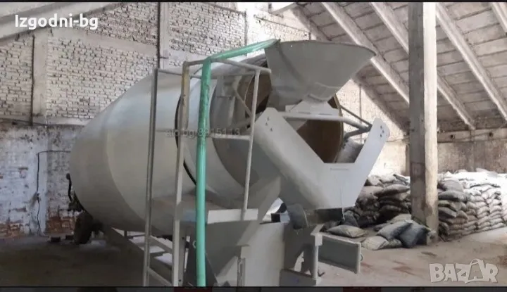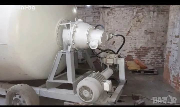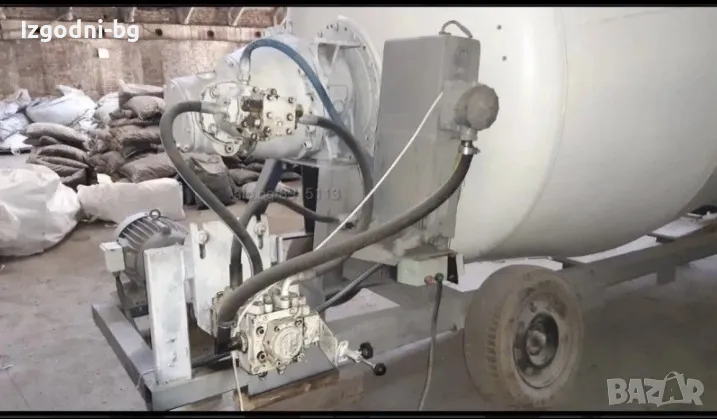 Не е работил с бетон, защото е ползван еднократно за боядисване на билки, дървен чипс и др. подобни. Задвижва се с електродвигател със карданен вал. Има платформа за монтаж на товарен бетоновоз.