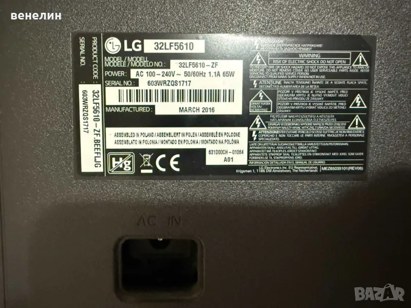 Частите са свалени от телевизор със счупена матрица LG 32LF5610